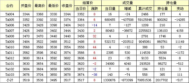 主力TA005合約當(dāng)日交易走勢