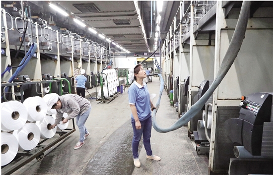 焊接鐵皮時(shí)火星飛濺開來,碩大的機(jī)器被搬運(yùn)到指定位置,新設(shè)備安裝有條不紊地進(jìn)行著……3月24日,來到位于馬鞍街道的“恒鳴化纖”生產(chǎn)車間,安裝工人們正在狹窄的空間內(nèi)忙碌著,老舊生產(chǎn)線正經(jīng)歷著“脫胎換骨”般升級(jí)改造?!案脑旌螽a(chǎn)品更多樣化,如現(xiàn)在生產(chǎn)的滌綸多孔絲,其橫截面是空心的,具有手感柔軟、光澤柔和、密度高等優(yōu)點(diǎn),而原先設(shè)備根本無法達(dá)到這一要求?!惫炯徑z工程師劉海軍說,此次“恒鳴化纖”共投入資金2.38億元對13條老舊生產(chǎn)線進(jìn)行全面改造,占到全部32條生產(chǎn)線1/3以上。
