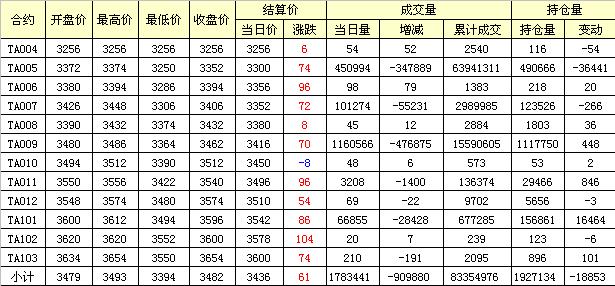 主力TA005合約當日交易走勢