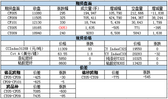棉紗期貨價(jià)格大幅低于現(xiàn)貨價(jià)格,建議有采購(gòu)意愿且真實(shí)需求企業(yè)可以考慮在期貨采購(gòu)。