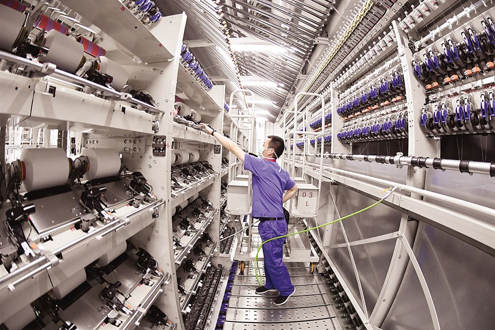 今年以來,盛澤鎮(zhèn)進(jìn)一步加大智能化改造,補(bǔ)強(qiáng)創(chuàng)新鏈、提升價值鏈、優(yōu)化生態(tài)鏈,不斷推動“傳統(tǒng)化纖制造”向“智造化工廠”轉(zhuǎn)型發(fā)展。圖為江蘇恒力化纖股份有限公司引進(jìn)的智能化加彈流水線,將產(chǎn)品優(yōu)等率提高到93%以上。