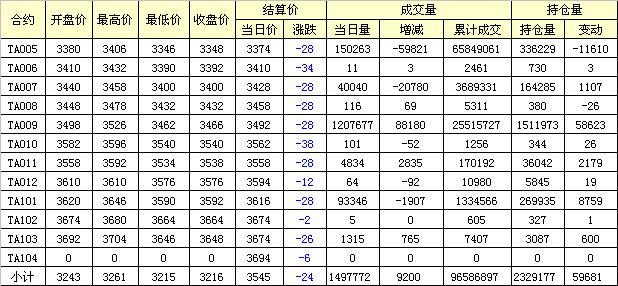 主力TA005合約當(dāng)日交易走勢(shì)