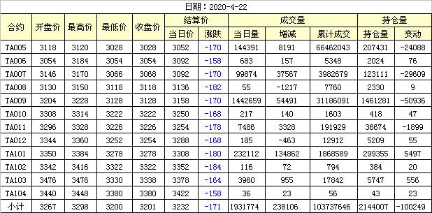 主力TA009合約當(dāng)日交易走勢