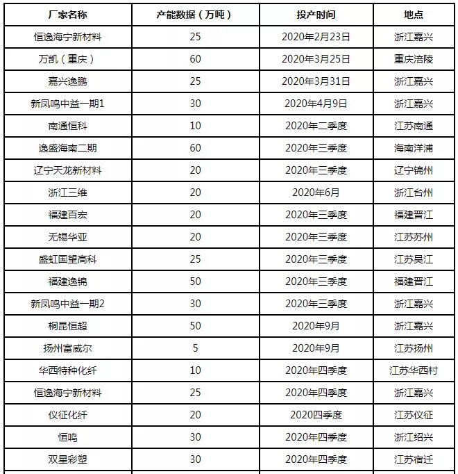 表3 2020-2022年中國聚酯新增產(chǎn)能