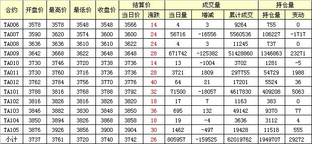 主力TA009合約當(dāng)日交易走勢