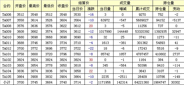 主力TA009合約當(dāng)日交易走勢
