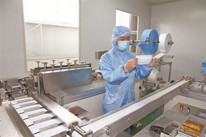 6月1日,在二師二十四團新疆華韌防護用品有限公司口罩生產(chǎn)車間,工人在檢查剛生產(chǎn)的口罩質(zhì)量。該公司是今年通過招商引資落戶二十四團的一家民營企業(yè),自5月中旬投產(chǎn)以來,日產(chǎn)口罩15萬只,產(chǎn)銷兩旺。