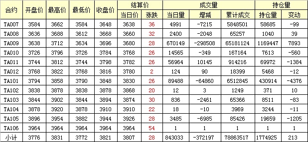 主力TA009合約當(dāng)日交易走勢