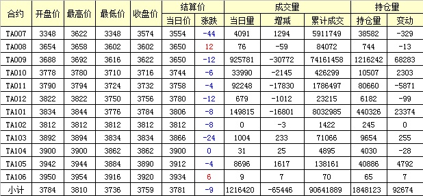 主力TA009合約當(dāng)日交易走勢