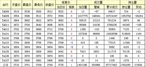 主力TA009合約當(dāng)日交易走勢(shì)