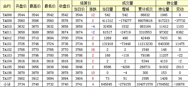 主力TA009合約當(dāng)日交易走勢(shì)