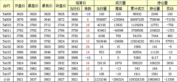 主力TA009合約當(dāng)日交易走勢(shì)