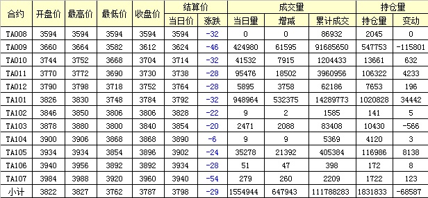 主力TA009合約當(dāng)日交易走勢(shì)