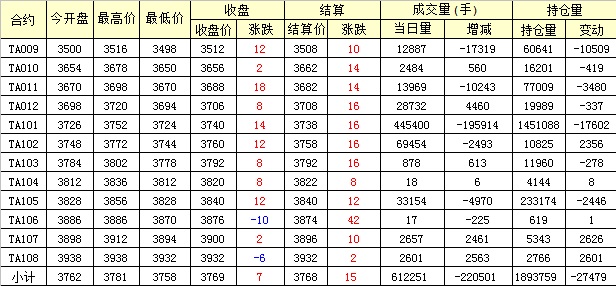 主力TA101合約當(dāng)日交易走勢