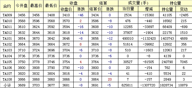 主力TA101合約當(dāng)日交易走勢