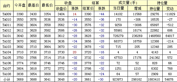 主力TA101合約當(dāng)日交易走勢