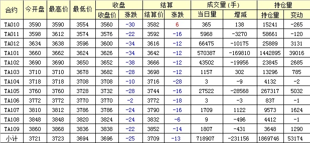 主力TA101合約當(dāng)日交易走勢