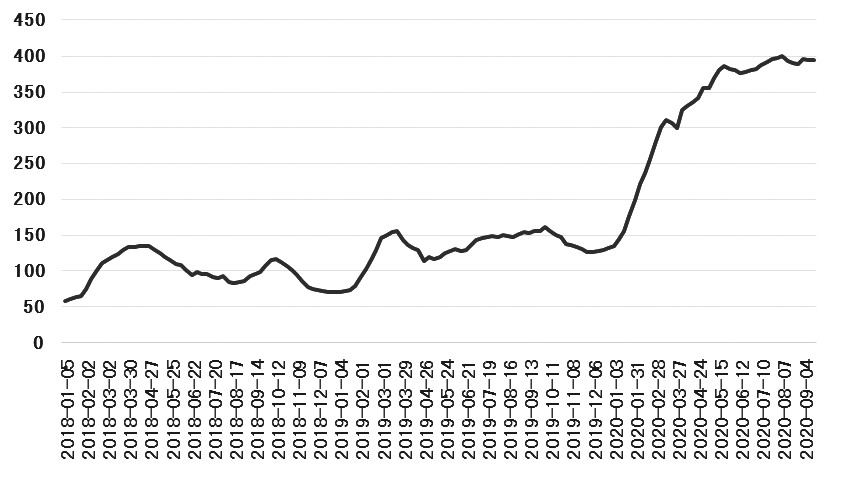 受疫情影響,上半年P(guān)TA需求欠佳,供給整體維持高位,這導致PTA社會庫存在上半年快速累積并連續(xù)刷新歷史峰值。8月7日國內(nèi)PTA社會庫存上升至398.5萬噸,創(chuàng)下歷史新高,距離400萬噸大關(guān)也僅有一步之遙。隨著8月中旬國內(nèi)PTA裝置檢修增多,PTA社會庫存“久違”地進入連續(xù)去庫狀態(tài),但去庫速度較為緩慢,持續(xù)處于“天量”的PTA庫存壓力難以得到有效緩解。此外9月PTA期貨倉單集中注銷使得大量的PTA期貨庫存轉(zhuǎn)為現(xiàn)貨流入市場,也進一步延緩PTA去庫速度。在更多新裝置投產(chǎn)之后,PTA供給將進一步提升,而需求料難以跟上供給提升的“步伐”,PTA庫存壓力會進一步加重。截至9月18日PTA社會庫存392.3萬噸,較前期高點下降6.2萬噸,較2019年同期大幅增加239.7萬噸。