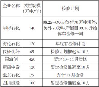 表為目前尚未檢修但已有明確檢修計劃的PTA裝置匯總