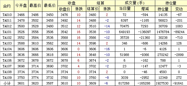 主力TA101合約當(dāng)日交易走勢
