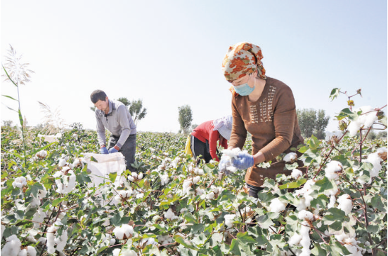 9月25日,農(nóng)民在柯坪縣阿恰勒鎮(zhèn)蓋孜力克村拾棉花??缕嚎h今年種植的11.68萬(wàn)畝棉花大面積吐絮,各地農(nóng)民搶抓時(shí)機(jī)拾棉花,促進(jìn)豐產(chǎn)豐收。