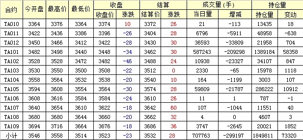 主力TA101合約當(dāng)日交易走勢