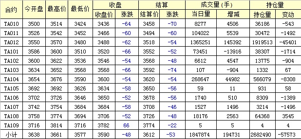 主力TA101合約當日交易走勢