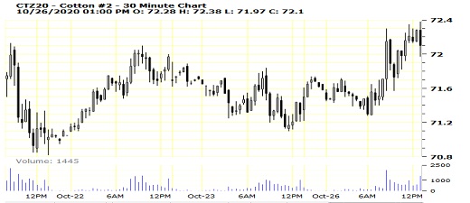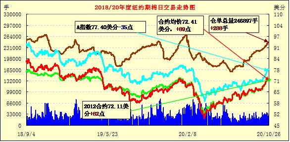 26日,紐約期棉止跌反彈。主力2012合約結(jié)算價(jià)72.11美分/磅,漲82點(diǎn);2103合約結(jié)算價(jià)72.72美分/磅,漲85點(diǎn);2105合約結(jié)算價(jià)73.22美分/磅,漲77點(diǎn);其他合約上漲57-72點(diǎn)不等。