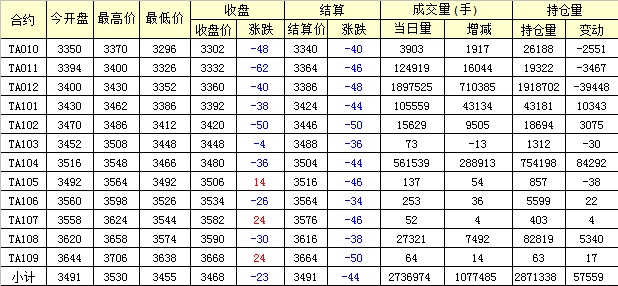 主力TA101合約當(dāng)日交易走勢(shì)