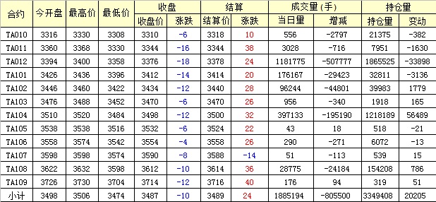 主力TA101合約當(dāng)日交易走勢(shì)
