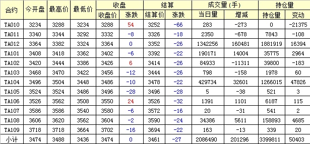 主力TA101合約當日交易走勢