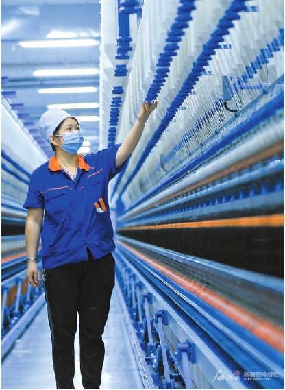 11月18日,位于呼圖壁縣五工臺鎮(zhèn)的新疆宇華紡織科技有限公司員工在生產(chǎn)車間工作。近年來,該縣依托棉花資源,全力打造北疆地區(qū)重要紡織服裝產(chǎn)業(yè)基地。