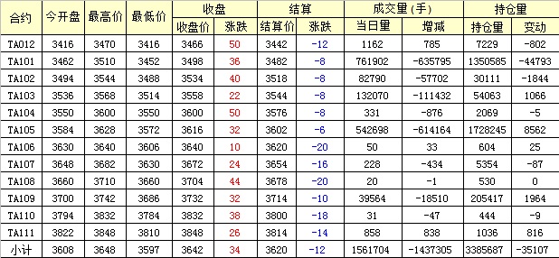 主力TA101合約當(dāng)日交易走勢(shì)