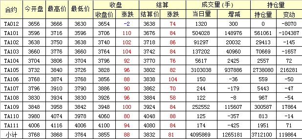 主力TA101合約當(dāng)日交易走勢