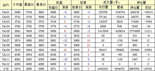 主力TA105合約當(dāng)日交易走勢(shì)