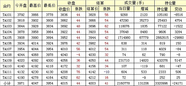 主力TA105合約當(dāng)日交易走勢(shì)