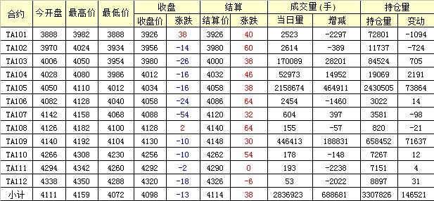 主力TA105合約當日交易走勢