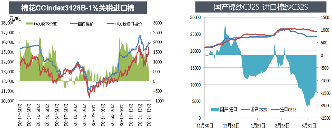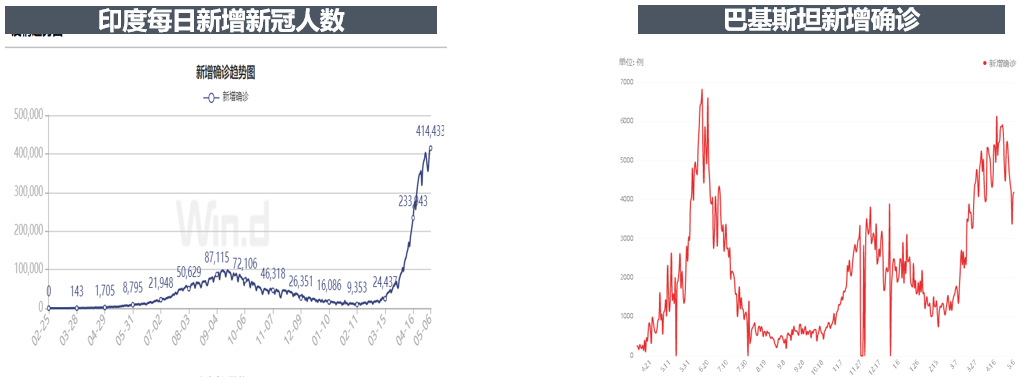 印度近期新冠疫情再次大爆發(fā),日新增確診人數(shù)連續(xù)多日超過40萬,印度首都新德里封城管制繼續(xù)延長。印度播種期較長,從4月到7-8月,當(dāng)前印度北部棉花種植時節(jié),棉花種植在農(nóng)村受影響較少。但印度國內(nèi)許多紡織廠是做出口訂單的,印度疫情加重,一方面其國內(nèi)紡織廠開工可能會受到影響,另一方面國外買家可能會考慮疫情對訂單的穩(wěn)定性影響,從而將訂單轉(zhuǎn)移到疫情控制較好的其他國家,如中國、越南等國家。如果印度封城時間延長或者范圍擴大,印度無論是國內(nèi)消費還是出口訂單預(yù)計都將下降,國內(nèi)棉花需求量也將下降。