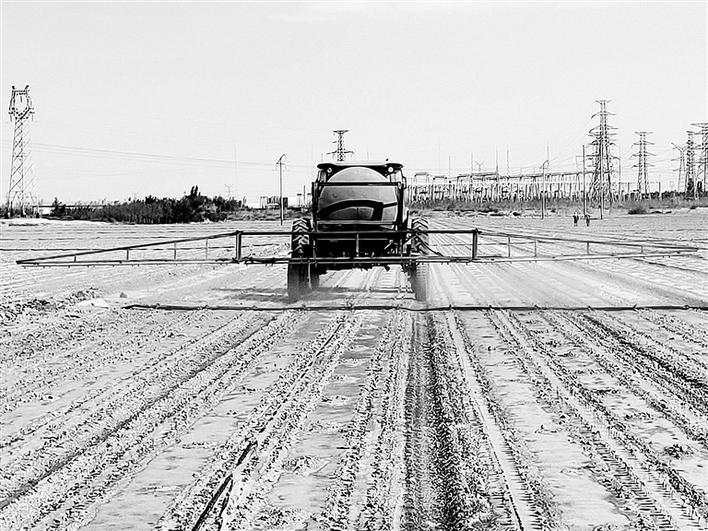 5月12日,八師一三四團十二連職工在棉田進行機械化作業(yè)。連日來,該團加強36萬畝棉花苗期管理,為棉花豐產(chǎn)豐收打好基礎(chǔ)。