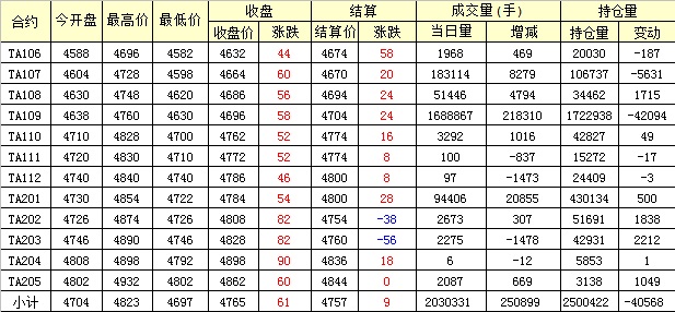 主力TA109合約當(dāng)日交易走勢(shì)
