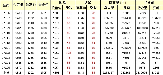 主力TA109合約當(dāng)日交易走勢(shì)