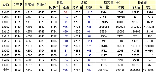 主力TA109合約當(dāng)日交易走勢