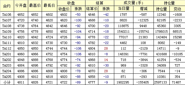 主力TA109合約當(dāng)日交易走勢