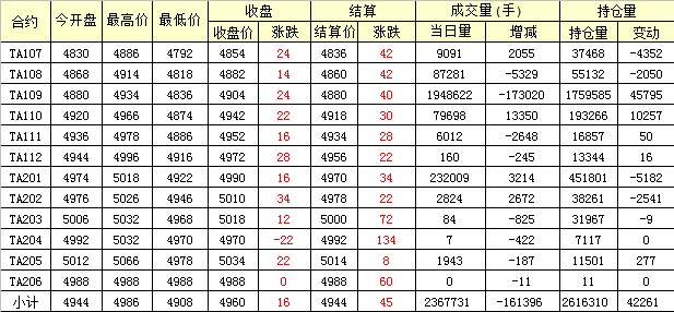 主力TA109合約當(dāng)日交易走勢(shì)