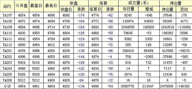 主力TA109合約當(dāng)日交易走勢(shì)