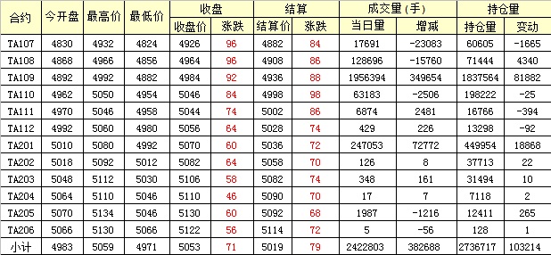 主力TA109合約當日交易走勢