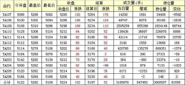 主力TA109合約當(dāng)日交易走勢(shì)