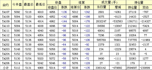 主力TA109合約當(dāng)日交易走勢