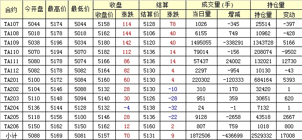 主力TA109合約當日交易走勢