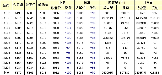 主力TA109合約當(dāng)日交易走勢(shì)